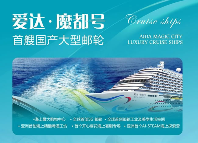 愛達郵輪 (Adora Cruises) 是隸屬于愛達郵輪有限公司的全新中國郵輪自主品牌,致力于打造真正受國人喜愛的高端郵輪度假體驗。愛達郵輪旗下首艘國產大型郵輪——愛達·魔都號 (Adora Magic City),于2024年01月01日以上海為母港開啟首航季。作為絲綢之路上的璀璨明珠,敦煌是中西文明交匯的歷史見證,多民族及多元文化在此并存共處愛達郵輪自敦煌壁畫藝術中采損靈感,選取中式美學的敦煌飛天及天女散花,將經典的顏色與靈動的線條融為一體,形成了一種氣象萬干的和諧場景,帶來了全新的美學體驗。魔都號郵輪全長323.6米,總噸位13.5萬噸,可容納5246名乘客,擁有2125間豪華客房和套房。